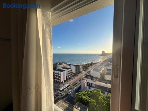 Boasting air-conditioned accommodation with a rooftop pool, Apartamento Novo com Vista para o Mar - 50 Metros da Praia is situated in Salvador. This beachfront property offers access to a patio, free private parking and free WiFi.