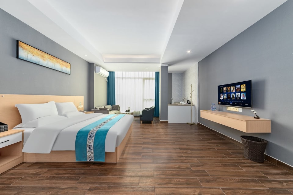 You can take a walk and explore the neighbourhood area of the hotel — OCT East, Airport North and Shenzhen Convention & Exhibition Center (SZCEC)..You can stop by the bar. Taste the local cuisine and have a rest in the restaurant. Accessible for guests with disabilities: the elevator helps them to go to the highest floors. There are other services available for the guests of the hotel. For example, a laundry and ironing..Here’s what you’ll find in the room to have a rest after a long day: a TV and slippers. The room equipment depends on its category.