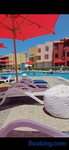 Boasting air-conditioned accommodation with a private pool, pool view and a terrace, Luxury chalet in Porto Matrouh Beach resort is situated in Marsa Matruh. Located 2.