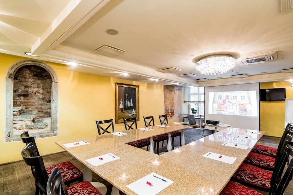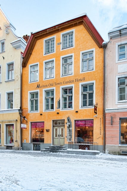 The beautiful Meriton Old Town Garden Hotel is located in the historic building in the Old Town Tallinn, between Lai and Pikk streets, featuring an inner courtyard.