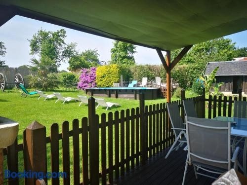 Set in Notre-Dame-du-Touchet and only 37 km from Scriptorial of Avranches - Manuscript Museum of Mont Saint-Michel, Maison charmante à Notre-Dame-du-Touchet avec piscine partagée offers accommodation with pool views, free WiFi and free private. ..