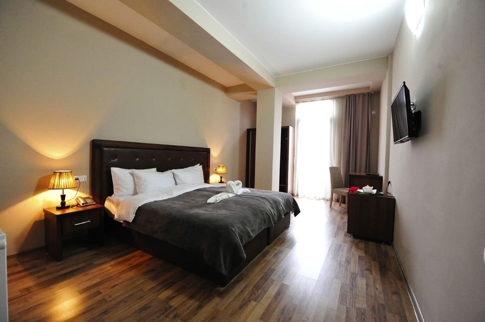Located in Tbilisi, Hotel Rogalux is in the business district, a 4-minute drive from Heroes' Square and 6 minutes from Tbilisi Concert Hall. This hotel is 4.3 mi (7 km) from Tbilisi Opera and Ballet Theatre and 4.4 mi (7 km) from Galleria Tbilisi. Take advantage of recreation opportunities such as bicycles to rent or take in the view from a rooftop terrace and a garden. This hotel also features complimentary wireless internet access, concierge services, and a fireplace in the lobby. Satisfy your appetite for lunch or dinner at the hotel's restaurant, or stay in and take advantage of the room service (during limited hours). Quench your thirst with your favorite drink at the bar/lounge. A complimentary full breakfast is served daily from 8 AM to 11 AM. Featured amenities include express check-in, express check-out, and complimentary newspapers in the lobby. A roundtrip airport shuttle is provided for a surcharge (available 24 hours), and free self parking is available onsite. Make yourself at home in one of the 42 air-conditioned rooms featuring refrigerators and minibars. Flat-screen televisions with cable programming provide entertainment, while complimentary wireless internet access keeps you connected. Private bathrooms with showers feature complimentary toiletries and hair dryers. Conveniences include safes and desks, and housekeeping is provided daily.