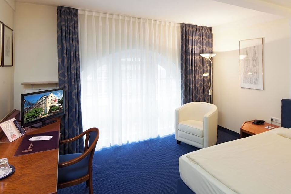 This historic 4-star hotel in Cologne is set in a former music museum. It offers quiet rooms, classical ceilings and wall paintings, and good transport links. The Hotel Viktoria's design is devoted to the world of music.