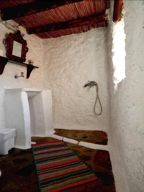 There is a transfer from the bus stop to the guest house. Please inform Aspros Potamos in advance if you want to use this service. The stone built houses of Aspros Potamos, originally built 300 years ago, use only renewable energy sources. The property’s solar photovoltaic system is used to illuminate the grounds and gardens, reading lamps above beds, bathroom light, and also refrigerators in the kitchen. Also hot water for the shower is generated with this system. Candles and oil lamps provide the main lighting in the houses. There are no electrical sockets in the houses. At the reception room, guests can charge any electrical appliances. In the same room there is a library, internet and WiFi network, all free of charge.