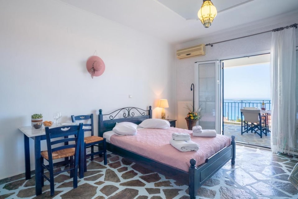 Set on an elevated position, in the area of Vlahata, Sirines offers air-conditioned studios with views of the Ionian Sea and Mount Ainos. It is surrounded by a flower garden.