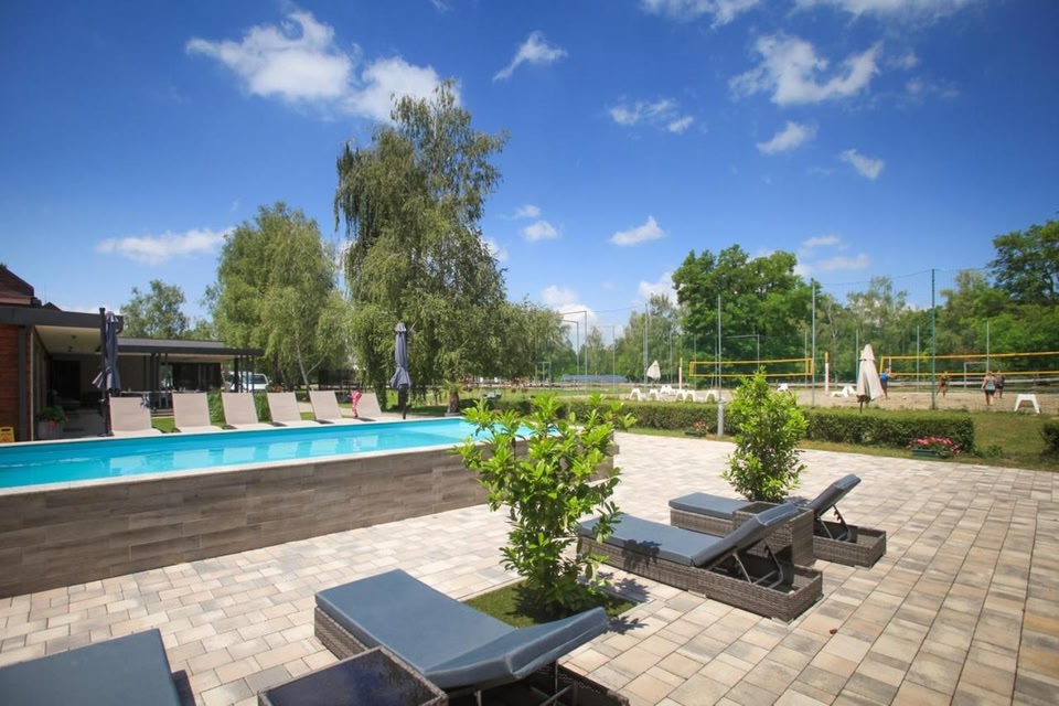 Offering garden views, Mohácsi Wellness Vendégház és Lovasklub in Mohács provides accommodations, a seasonal outdoor swimming pool, barbecue facilities, and a shared lounge.