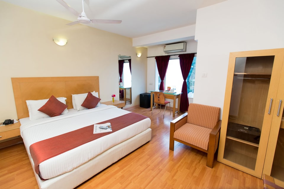 With a stay at Marina Inn, you'll be centrally located in Chennai, a 4-minute drive from Consulate General of the United States, Chennai and 11 minutes from Marina Beach. This hotel is 9.1 mi (14.7 km) from Chennai Trade Centre and 0.5 mi (0.8 km) from Mayor Radhakrishnan Stadium. Make use of convenient amenities such as complimentary wireless internet access, concierge services, and a television in a common area. Enjoy international cuisine at The Stadium, one of the hotel's 2 restaurants, or stay in and take advantage of the room service (during limited hours). Quench your thirst with your favorite drink at the bar/lounge. Featured amenities include a business center, express check-in, and express check-out. Guests may use a roundtrip airport shuttle for a surcharge, and free self parking is available onsite. Make yourself at home in one of the 48 air-conditioned rooms featuring LCD televisions. Complimentary wireless internet access keeps you connected, and cable programming is available for your entertainment. Bathrooms feature showers with rainfall showerheads and complimentary toiletries. Conveniences include phones, as well as safes and desks.