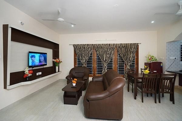 Krishna Vibe Service Apartment offers accommodations in Tiruchirappalli, 3 miles from Sri Ranganathaswamy Temple and a 9-minute walk from Chatram Bus Station. This property offers access to a balcony and free private parking.