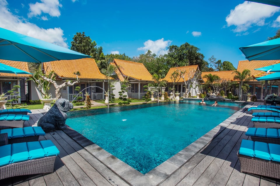 Located 328 feet from Mushroom Beach in Lembongan, The Palm Grove Villas features private villas with private entrances and traditional Balinese thatched roofs.