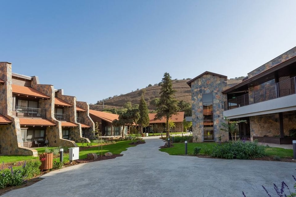 Merom Golan Resort offers quiet mountain accommodations in the northern Golan Heights. The complex has large gardens, a seasonal indoor pool, a farm and stables, sports fields and a supermarket.
