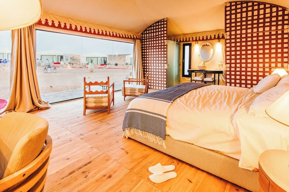 Situated in Merzouga, Merzouga Luxury Desert Camps provides accommodation with seating area. This property offers access to a terrace and free private parking. The luxury tent features mountain views, a picnic area and a 24-hour front desk.