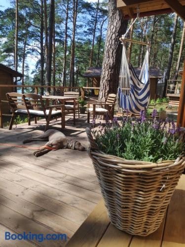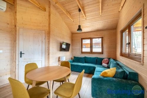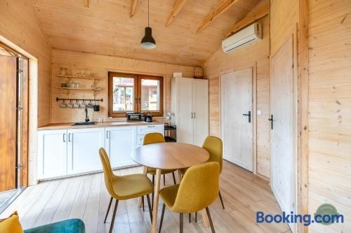 Located in Borsk, 21 km from Kaszuby Ethnographic Park and 34 km from Bory Tucholskie National Park, Zakątek Wdzydze z widokiem na jezioro -domek nr 19 offers air conditioning.