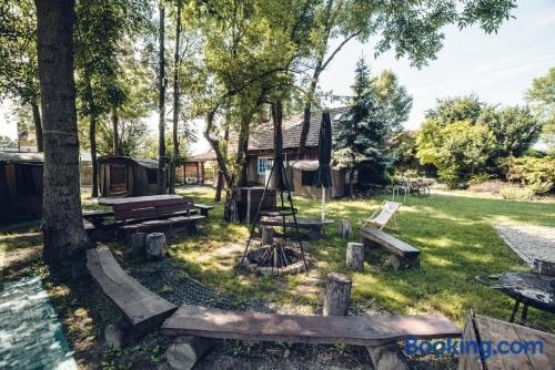 A recently renovated luxury tent situated in Wietrzychowice, Pole Namiotowe Kogutowo features a bar. This luxury tent has a plunge pool, a garden, barbecue facilities, free WiFi and free private parking.
