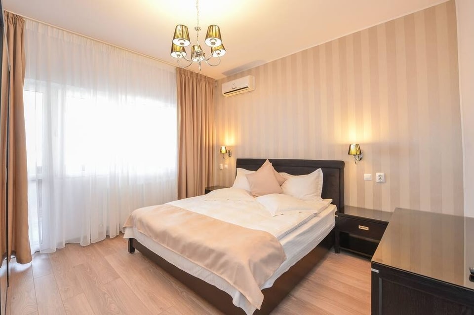 Our beautiful, comfortable and spacious two bedroom apartment is located right near Cismigiu Gardens, in the middle of Bucharest, in a silent area, but in the same time, close to the main attractions of the city. The apartment is located at the 8th floor in a building with 9 floors and the view is panoramic over the area - you can see the park and even the Parliament Building from the terrace. The entrance in the building has secured access and is video supervised. The apartment has: living room (extendable sofa, coffee table, dining table and four chairs, flat Tv (126 cm) with 200 channels, 2 bedrooms (each one with king size beds 180 x 200, wardrobe), kitchen (gas cooker, microwave, refrigerator, coffee maker, toaster, complete cutlery, glasses, plates) and a complete bathroom with shower Like all of our properties, Cismigiu Apartment is situated very close to The Old Town, a place where you can spend your time having fun in the pubs or clubs, eating our traditional dishes, or choosing one of the restaurants with international cuisine. Also, in the proximity, you can find non-stop shops from where you can buy snacks, drinks, coffee or cigarettes, a Lebanese restaurant, a traditional restaurant, a market with fruits, legumes and food, in case you choose to cook at home. In order to move around the city : there is a variety of options, from metro (University or Romana Square), bus station at just 1 minute walking, a taxi station where you can found a car at any time. Also at just few minute walking you can found the Bucharest City Tour Bus - it helps you to see Bucharest biggest attractions. The ticket cost is 25 lei and it is valid for 24 hour (this bus is suspended for 2020 because of the pandemic). You are located in the central are of Bucharest - so you are easy reachable by all the delivery companies. Free services Cleaning and linens / towels change – once a week Permanent assistance during your stay Public parking in the area Transfer from/to airport – for minimum 10 nights Rental license number: