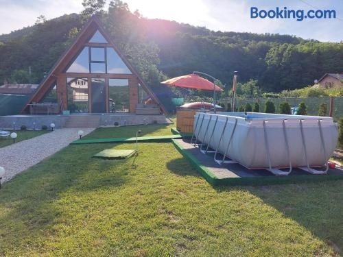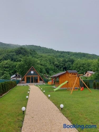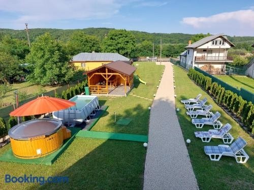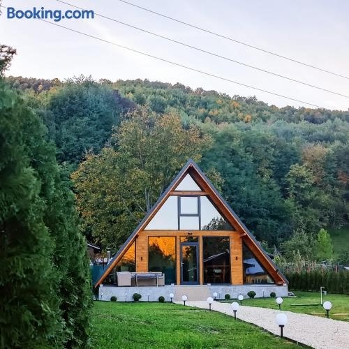 Boasting a garden, an outdoor pool and garden views, Cabana A-frame Nis is set in Coţofăneşti. The property features inner courtyard and quiet street views. The property is non-smoking and is situated 15 km from Slanic Salt Mine.