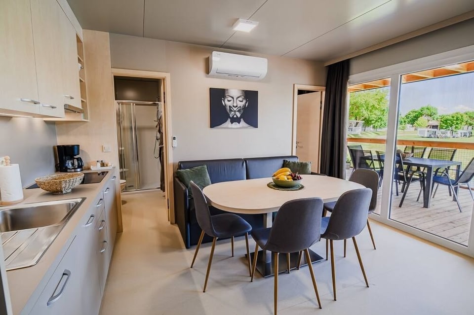 Located in Čatež ob Savi, 34 km from Arena Shopping Centre Zagreb, DELUXE Lake View Mobile Homes with Thermal Riviera Tickets features accommodation with a hot tub, spa facilities and wellness packages.