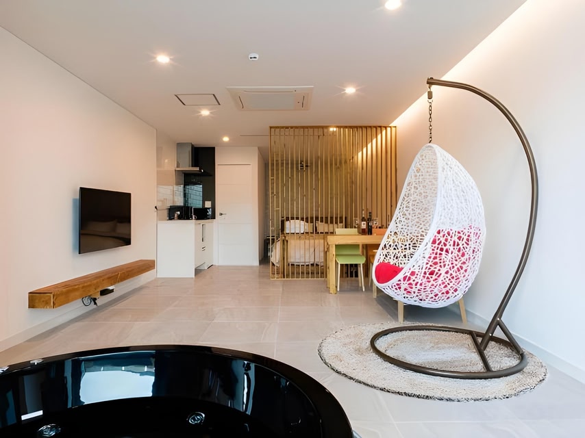 When you stay at W Jiwoo Resort in Gapyeong, you'll be on a river, within a 15-minute walk of Nami Island and Cheongpyeong Lake. This hotel is 0.7 mi (1.2 km) from Jara Island and 1.8 mi (2.9 km) from Ewhawon Garden. Enjoy recreation amenities such as a hot tub or take in the view from a terrace. Additional features at this hotel include complimentary wireless internet access and concierge services. Enjoy a meal at the restaurant or snacks in the hotel's coffee shop/cafe. Local cuisine breakfasts are available daily from 8 AM to 10 AM for a fee. Featured amenities include complimentary newspapers in the lobby, luggage storage, and coffee/tea in a common area. Free self parking is available onsite. Treat yourself to a stay in one of the 100 individually decorated guestrooms, featuring indoor private hot tubs and heated floors. Your pillowtop bed comes with down comforters and premium bedding. Rooms have private patios. Kitchens are outfitted with refrigerators and microwaves. 42-inch LED televisions with digital programming provide entertainment, while complimentary wireless internet access keeps you connected. License number: 제2017-00024호