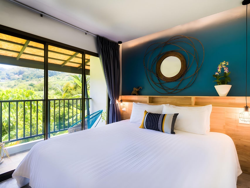 KRAAM Silhouette Hotel and Cafe in Chalong, Phuket, offers a boutique stay with unique blue-themed designs. It provides a relaxing experience with an outdoor swimming pool and modern, air-conditioned rooms equipped with free WiFi and private bathrooms. Some rooms have balconies or mountain views, enhancing the cozy atmosphere. The hotel ensures comfort with amenities like a desk, kettle, TV, and safety deposit box. It is 2.7 km away from Chalong Beach and Pier, 5.3 km away from Chalong Temple, and the famous AKA training camp is right next to KRAAM, make it a great choice for travelers seeking style and convenience.