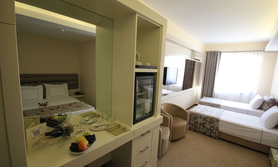 Located a 13-minute walk from the popular Grand Bazaar, this hotel features an outdoor pool and a hot tub on the roof level with panoramic city views. An indoor pool, Turkish bath and a sauna are available. License number: 2538