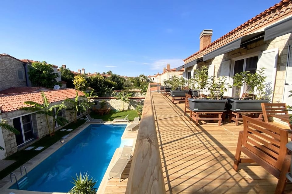 Alaçatı, a neighborhood in Çeşme, is home to La Maison De Yasmine. Alacati Marina and Çeşme Marina are worth checking out if an activity is on the agenda, while those wishing to experience the area's natural beauty can explore Ilica Beach and Boyalık Beach. Oasis Aquapark and Birds of Alaçati are also worth visiting. Hotel with a seasonal outdoor pool, 4-minute walk to Alaçatı ÇarşıA seasonal outdoor pool, dry cleaning, and laundry facilities are available at this smoke-free hotel. Additionally, a 24-hour front desk and a garden are onsite. Housekeeping is available on request. La Maison De Yasmine offers 10 accommodations with safes. Accommodations offer separate dining areas and include desks. Beds feature premium bedding. 52-inch Smart televisions come with premium satellite channels and Netflix. Bathrooms include showers. Guests can surf the web using the complimentary wireless Internet access (speed: 25+ Mbps). Change of towels and change of bedsheets can be requested. Housekeeping is provided on request. Recreational amenities at the hotel include a seasonal outdoor pool.