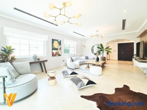 Offering a garden, Luxury 3BR Private Villa and Elaborate Gardens offers accommodations in Dubai. This property offers access to a balcony, free private parking, and free Wifi. The property provides a children's playground and outdoor furniture.