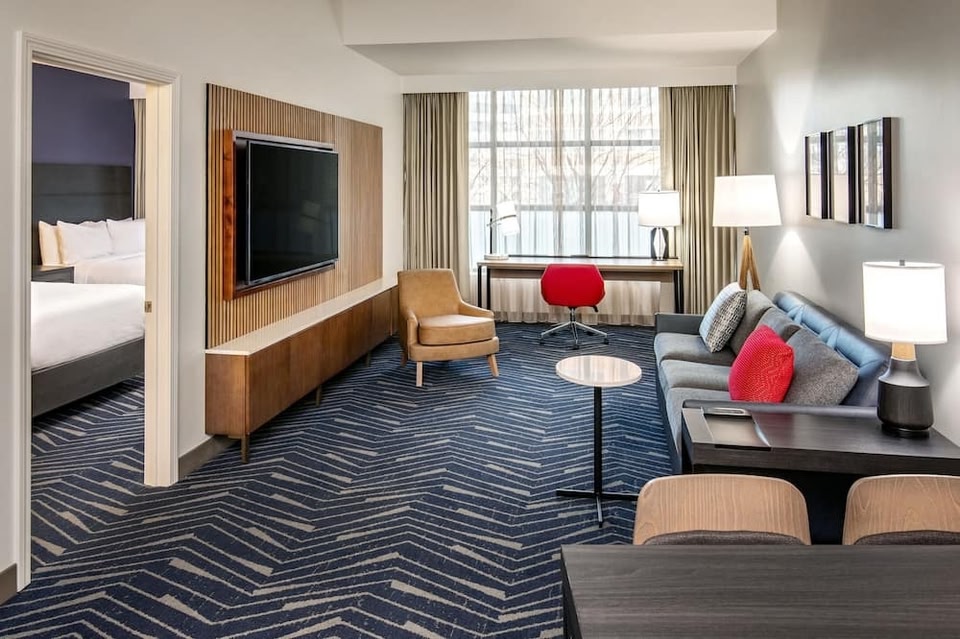 Experience a refreshing getaway at the newly renovated Residence Inn Boston Cambridge. Our hotel in Kendall Square, Cambridge MA is just one subway stop away from downtown Boston and near many attractions including Massachusetts General Hospital, Museum of Science, Fenway Park, Harvard University, MIT, TD Garden, Encore Boston Harbor and more. Relax and recharge in expansive apartment-style accommodations with fully equipped kitchens, separate living spaces and a thoughtful collection of modern amenities at our extended stay hotel in Boston. Fuel up for a full day in Massachusetts at our complimentary breakfast buffet and later enjoy cocktails and light fare at our new Theory Bar. Stay active in our 24-hour fitness center featuring Peloton Bikes, Matrix Fitness Equipment, and more. Host an intimate meeting in the boardroom or a special occasion for up to 100 guests in our redesigned meeting space in Cambridge, MA. The Residence Inn Boston Cambridge has everything you need to relax in a historic city.