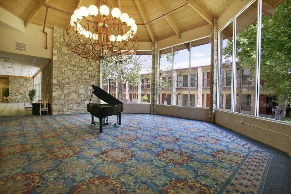 Nestled in the heart of the Texas Hill Country, this Kerrville resort offers a 15,600 square-foot conference centre for events. Classic white linens and warm lighting are featured in rooms with a seating area and flat-screen TV.