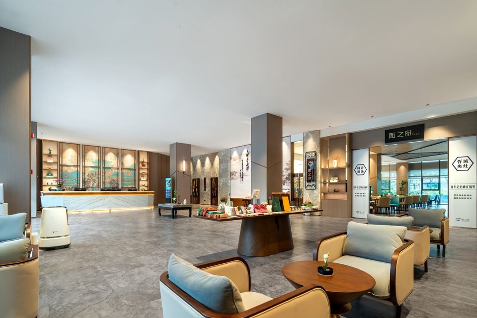 The SCHOTEL (Suzhou Yueliangwan) (Shuxiangshijia Jiudian Suzhou Yueliangwan Dian) is located in Ruoshui Road, Dushu Lake Higher Education Zone, Suzhou Industrial Park. It is only a few minutes' walk from Exit 2 of Metro Line 2 Yueliang Bay Station. Suzhou Bio-Nanotechnology Park is just a short distance away, and it is convenient to get to Suzhou University Dushu Lake Campus, Western suburb University of Liverpool, Suzhou Pingtan School and other well-known universities. The hotel is close to Dushu Lake Gymnasium, Dushu Lake Movie Theater, Dushu Lake Neighborhood Center, Dushu Lake Christian Church and Egret Park. It is very convenient to reach the bustling business district of the park - Yuangrong Times Square, Esprit Bookstore and Li Gongdi around Jinji Lake Business District, Suzhou Old Street, Xietang Old Street and Baitang Ecological Park. The hotel has a variety of room types, chic, elegant, clean and comfortable. The restaurant is unique, offering buffet and lunch and dinner, and can accommodate 95 people at the same time. There are two large and small multi-function halls, which can accommodate 20 to 200 people, and the facilities are fully equipped to undertake large-scale events and various family banquets of the company; 8 luxury boxes can meet the needs of different banquets.