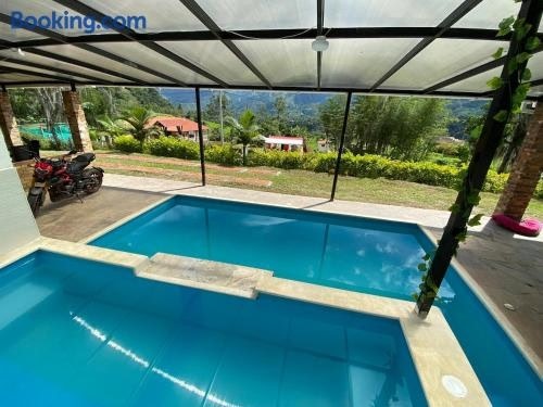 Boasting a private pool and garden views, Piscina Privada, Zona parrillas, 8 min del Pueblo, Parqueadero Cubierto is situated in Pacho. This property offers access to a balcony, free private parking and free WiFi.