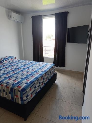 Located in Tuluá, Apartaestudio en Tulua Valle provides air-conditioned accommodation with a balcony and free WiFi. The apartment is composed of 1 bedroom, a fully equipped kitchenette, and 1 bathroom. A flat-screen TV is provided.