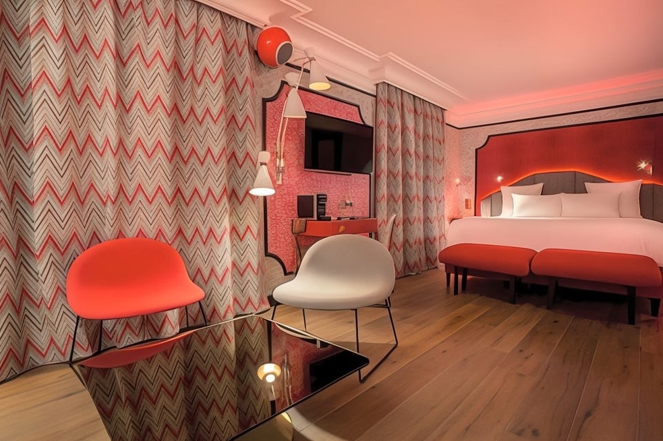 Idol Hotel is located in Paris, 100 metres from Saint-Lazare Train Station, a 15-minute walk from Galeries Lafayette. The hotel is inspired by groovy and funky music from the 60s to the 80s.