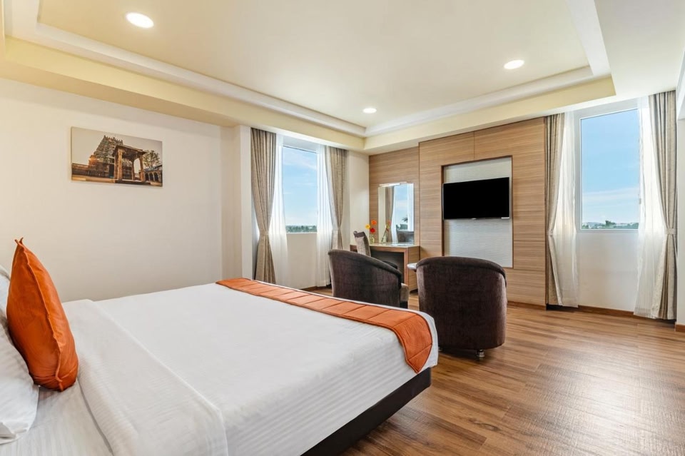 Situated in Madurai, 6.5 km from Meenakshi Temple, Sterling V Grand Madurai features accommodation with an outdoor swimming pool, free private parking, a restaurant and a bar. The property is set 1 km from Mattuthavani Bus Terminus, 5.