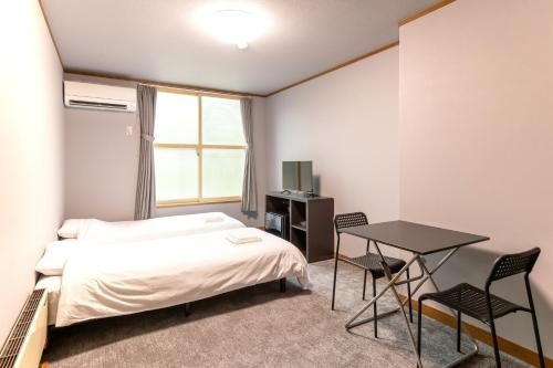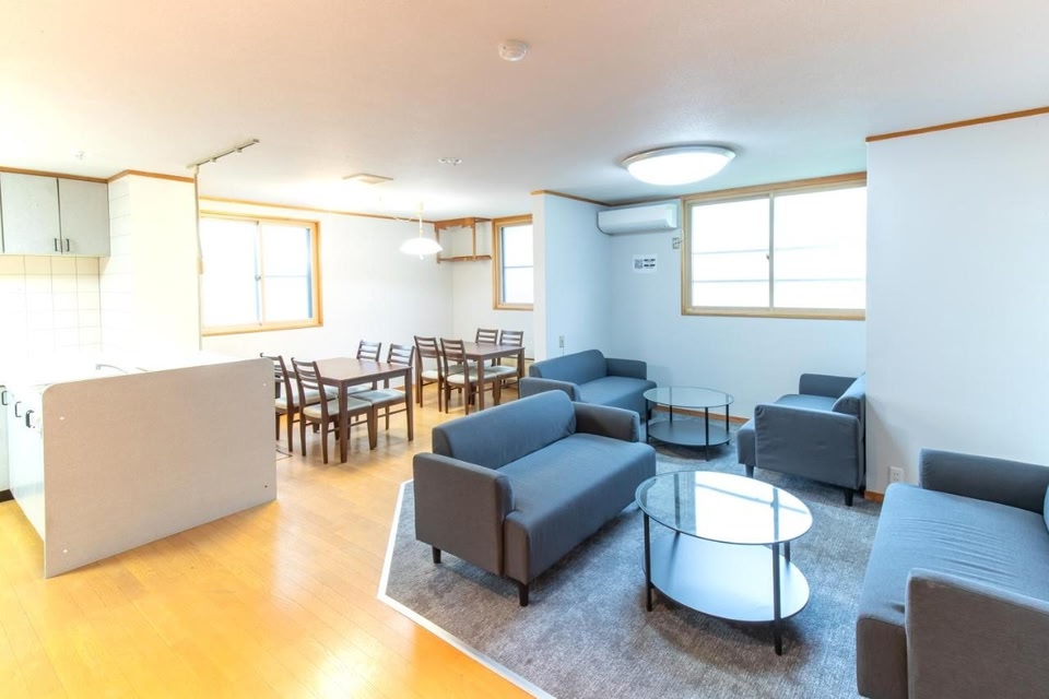 Comfortable Accommodation: 55BASE Hakuba in Hakuba offers a lounge and shared kitchen. Guests enjoy air-conditioning, bath, hairdryer, shared bathroom, shower, and TV.