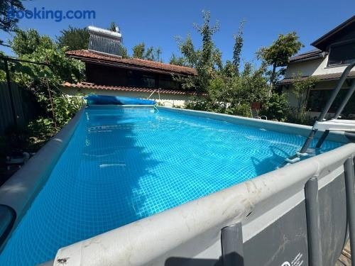 Featuring a seasonal outdoor swimming pool, garden and views of garden, Casa SiMaria is located in Simeria, 14 km from AquaPark Arsenal. This property offers access to a terrace, free private parking and free WiFi.