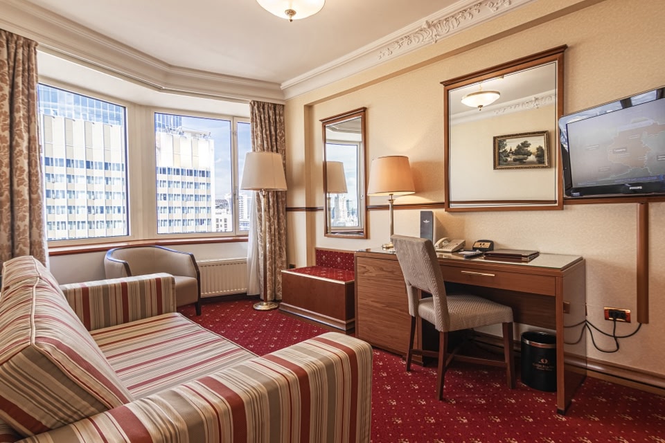 Location Golden Ring Hotel is located in the center of the cultural and business life of Moscow, opposite the famous high-rise building of the Russian Foreign Ministry and the historic Arbat Street, not far from the Smolenskaya metro station.In the hotel Always at the disposal of hotel guests: round-the-clock room service, concierge services, underground guarded parking, transfers from / to airports and train stations, visa support, currency exchange.Rooms The hotel has 293 rooms of various categories, including two luxurious Presidential Suites. The interiors of the rooms are made by Italian and Swiss designers in the style of elegant classics. The rooms are equipped with everything necessary for a comfortable stay of guests: beds with orthopedic mattresses, blackout curtains, air conditioning, Hotel TV & WiFi, horizontal safe, mini-bar, charging station for mobile devices, organic cosmetics and other modern amenities.