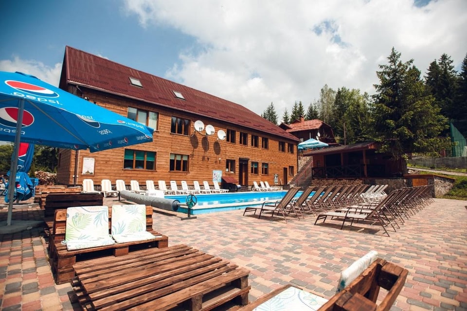 Shale Filvarok is located in Slavske and offers free WiFi access and a heated outdoor pool with a bar. Each room has a flat-screen TV with satellite channels, a balcony with mountain views and a sofa.